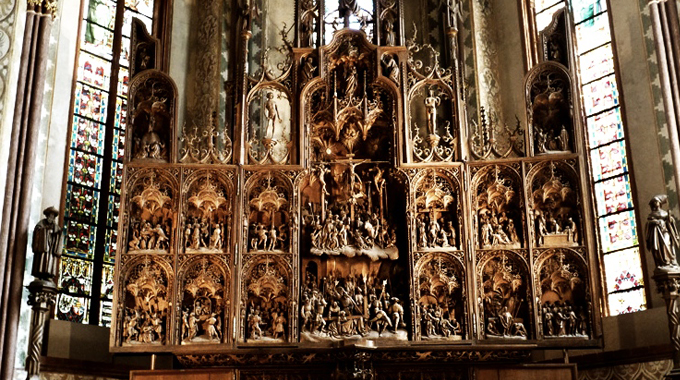 Schleswig: Bordesholmer Passionaltavle, også kaldet Brüggemannalteret, er et fløgelalter udformet af Hans Brüggemann i perioden 1514–1521 som hovedalter for Bordesholm Klosters kirke. Siden 1666 står det i Schleswigs Domkirkes kor. Det komplekse altertavle fra overgangen mellem sengotik og renæssance betragtes både ud fra sin kunstneriske…