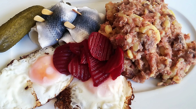 Zutaten (für 2 Personen)Für das Labskaus400 g Kartoffeln (mehligkochend)Salz100 g Gewürzgurken300 g Rote Bete (geschält und gekocht)Zwiebel200 g Corned Beef2 EL Sonnenblumenöl70 ml Gewürzgurkenfond Für die Spiegeleier1 EL Butter2 Eier (Größe L) dazu kommt nach Geschmack½ TLSalz und Pfeffer aus der Mühle 2 Matjesfilet oder Rollmops4 Zweige frische Blattpetersilie ZUBEREITUNGEinen Topf Wasser zum Kochen bringen und leicht salzen. Die…